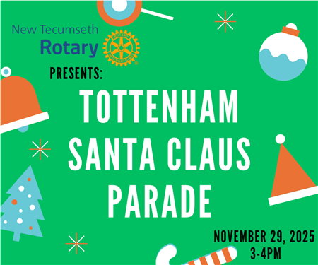 This year’s Parade is brought to you by New Tecumseth Rotary in cooperation with the Beeton Tottenham Business Improvement Association. It starts at 3:00 PM at the high school and travels south along Queen to Rogers Road, where it concludes.